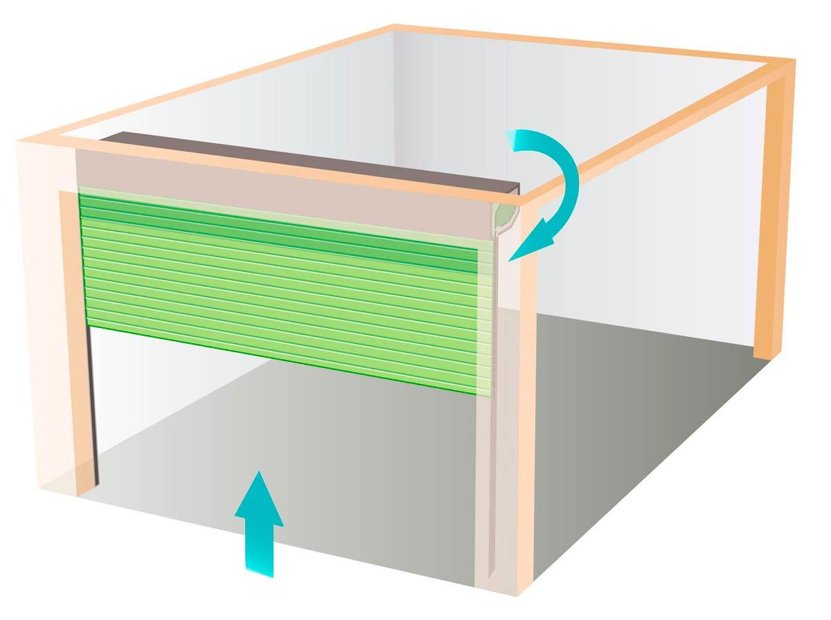 - роллетные. Полотно разбито на узкие, соединенные между собой, подвижные секции. При открывании накручиваются на барабан, установленный в коробе под потолком. Отлично подходят для гаражей с невысокими потолками. Выделяются простотой монтажа.